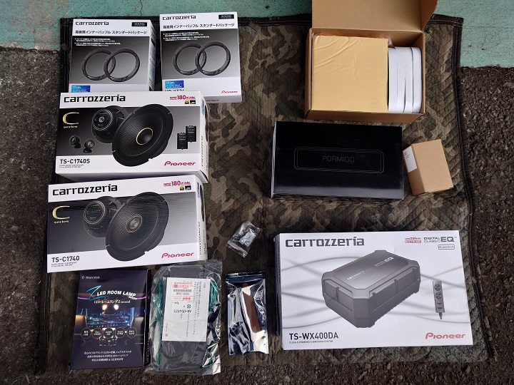 サブウーファーが有りますが、配線が足りなかった為後日改めて取り付けになります。
