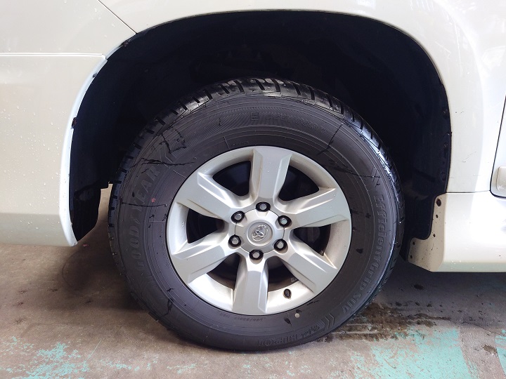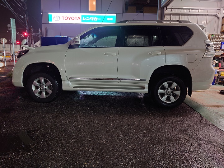ホーム > ブログ/事例 > 150系 > トヨタ 150系 ランドクルーザープラド リフトアップスペーサー 調整式 ラテラルロッド 持ち込み 取り付け アライメント調整 施工