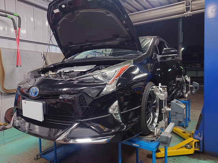 トヨタ 50系 プリウス ダウンサス ホイールスペーサー ホイールタイヤセット 持ち込み 取り付け アライメント調整 施工
