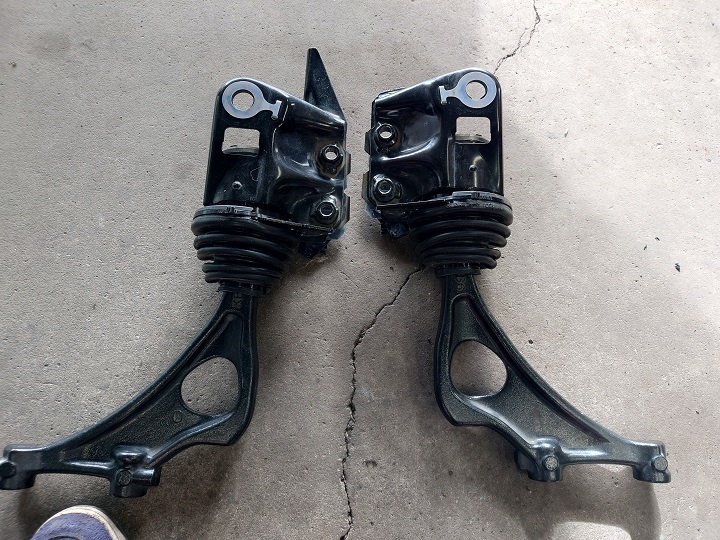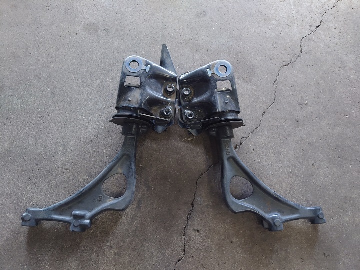 作業ですが、ブーツの取り付けにロアアームの脱着が必要になるのでサクッと取り外します。