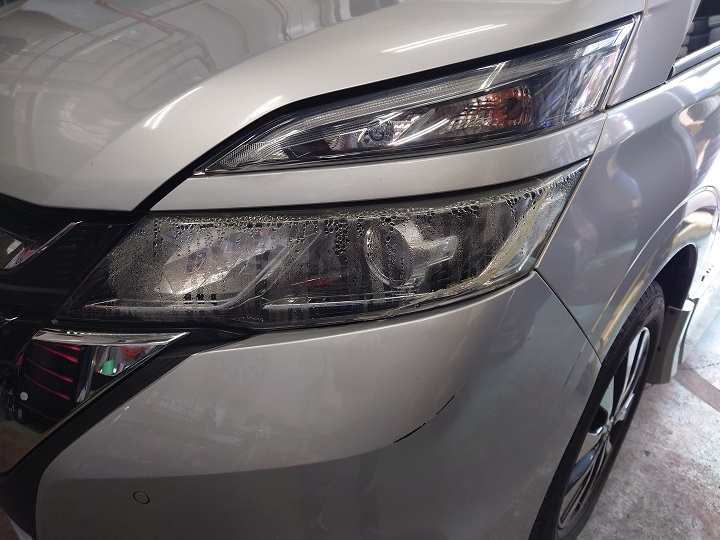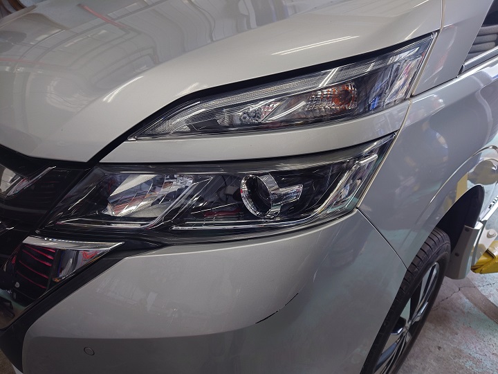 日産のC27セレナが、左ヘッドライトAssyの交換で入庫しました!