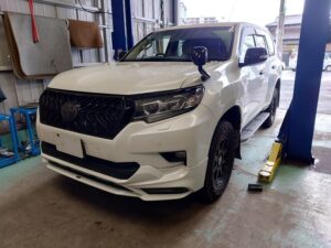 トヨタ 150系 ランドクルーザープラド リフトアップスペーサー 持ち込み 取り付け アライメント調整 施工